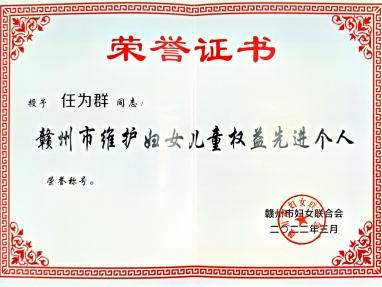 市院机关1名同志被评为全国普法先进个人,2名同志入选市法学会首席法律咨询专家,1名同志获得“全市维护妇女儿童权益先进个人”,1名同志在共青团江西省委组织的“学习二十大,赣鄱青年说”宣讲大赛中获得优秀奖。