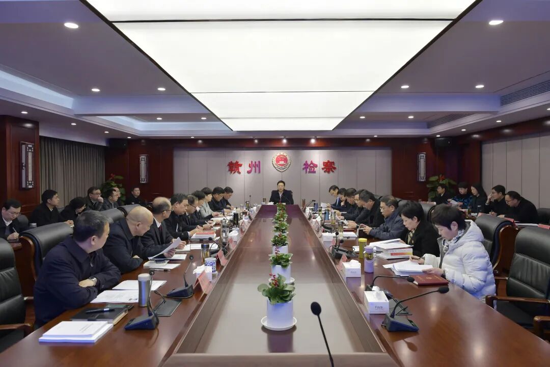 2月8日,赣州市人民检察院召开党组中心组学习(扩大)会暨2022年度民主生活会集中学习。党组书记、检察长熊良明主持会议并讲话,班子成员、县处级以上干部和各部门负责人参加会议。
