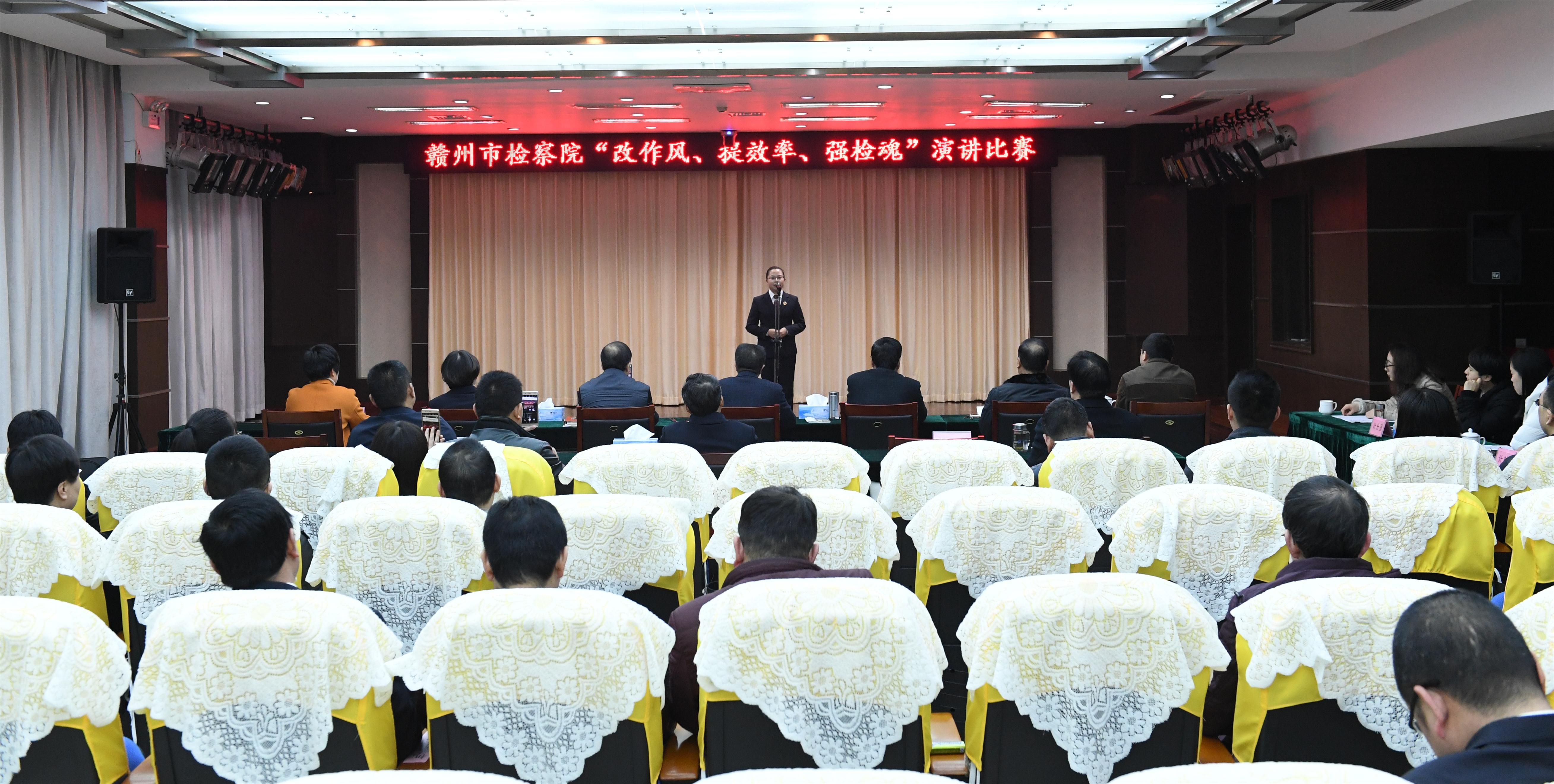 为进一步坚定理想信念,落实市委关于“改作风、提效率”的工作部署,提高党性觉悟,教育引导广大党员干部尤其是青年干警自觉遵照党员标准规范言行,改进工作作风,提高工作效能。3月15日下午,市院举办了主题为“改作风、提效率、强检魂”演讲比赛。市院党组书记、检察长江阶虎全程观看了比赛,其他在家的院领导出席比赛并担任现场评委。