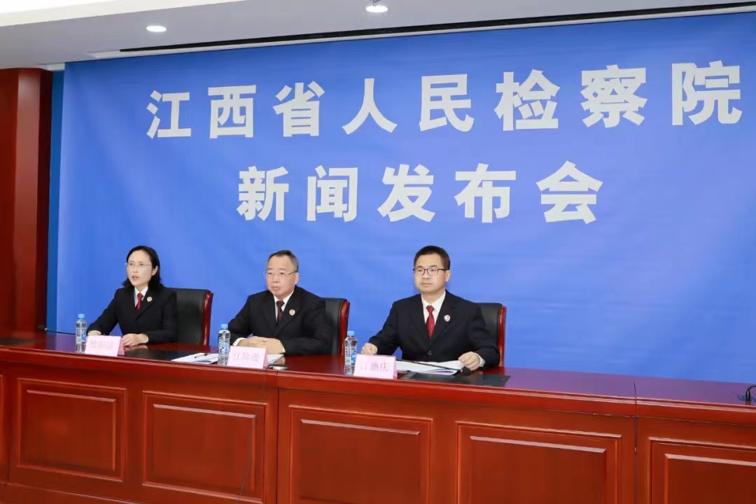 出席今天发布会的有:省人民检察院一级高级检察官江阶虎,省人民检察院三级高级检察官、第八检察部主任汪德庆,九江市人民检察院第六检察部副主任、四级检察官助理殷羽佳。我是本次发布会主持人,省人民检察院新闻处处长欧阳晶。